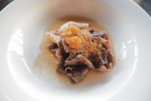 焼きしゃぶは塩とたれから選択可能。塩を選ぶと、おろしポン酢をのせてくれます。
