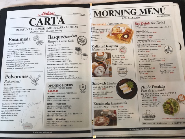 マヨルカ(Mallorca)のモーニングメニューはこちらです。