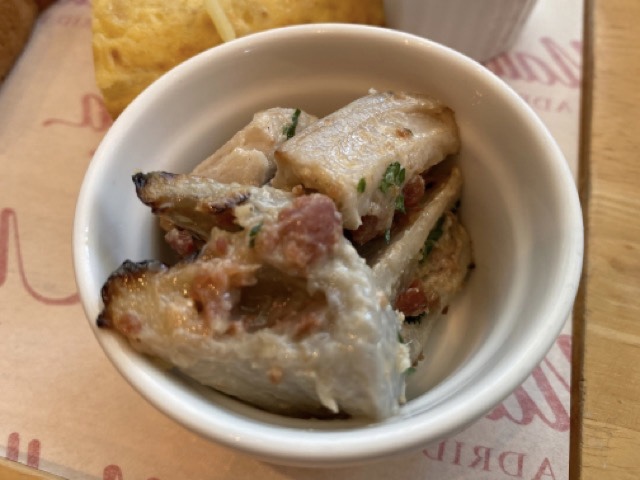 レンコンとハモンセラーノの和え物は、ハモンセラーノの香りが鼻に広がりレンコン臭さを全く感じませんでした。野菜が苦手な方でもおいしく召し上がれると思います。