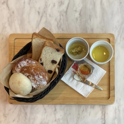 蜂蜜食パンはほんのりとした甘さで、付け合わせのオリーブやアンチョビと相性抜群でした。